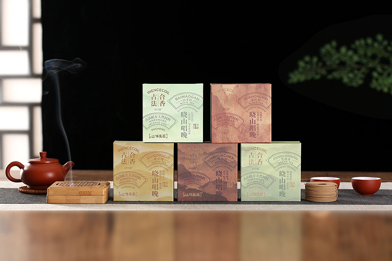 品茶是清事,若無好香在爐,遂乏一份幽趣。品茗焚香已經成為一種時尚。制香師立足中國茶文化中五大經典茶品:白茶、紅茶、綠茶、黑茶、青茶,設計了五款香品:白茅稈、畫紅眉、芳草綠、黑月沉、醉青閨,每個名字都自帶意境。